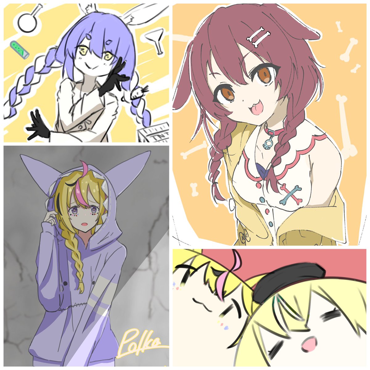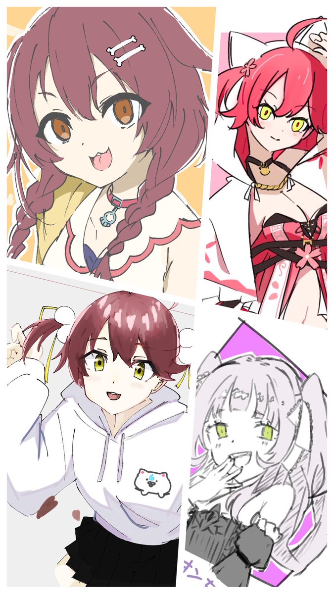 「どぉ?みんなかわいいぃ?」 パッツン可愛すぎたから、パッツンverと勉三さんverを差分で描いてみた🤗 元絵も引用したからみんな見てくれw #戌神ころね #できたてころね twitter.com/jeanne_thous…
