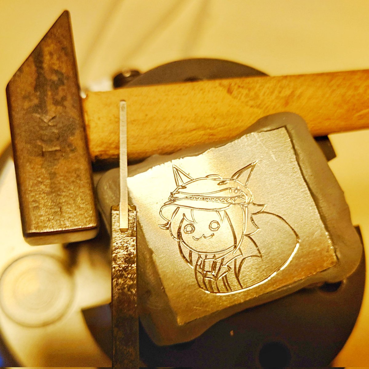 The first drawing of Lexium's member on silver plate by engraving is Mysta 🧡🧡🧡 #mystArt #mystarias #engraving #luxiem #tyoukin_acg #彫金
