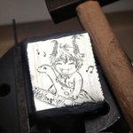 Draw Sonny holding Briskadet on silver plate by engraving #TYOUKIN_ACG #Briskart #Briskadets #彫金 #engraving
