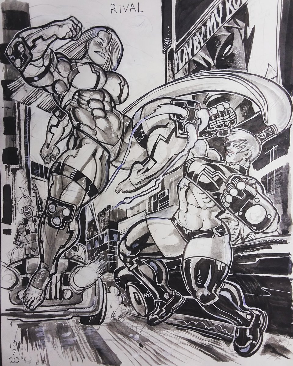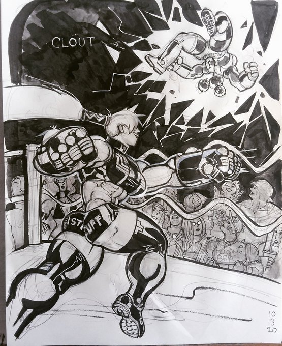 Vicious Day 18 part 1. Swagger is unprepared for the savagery of Turnabout's single doubleteam! #artwork #inktober #fisticuff #swagger #turnabout