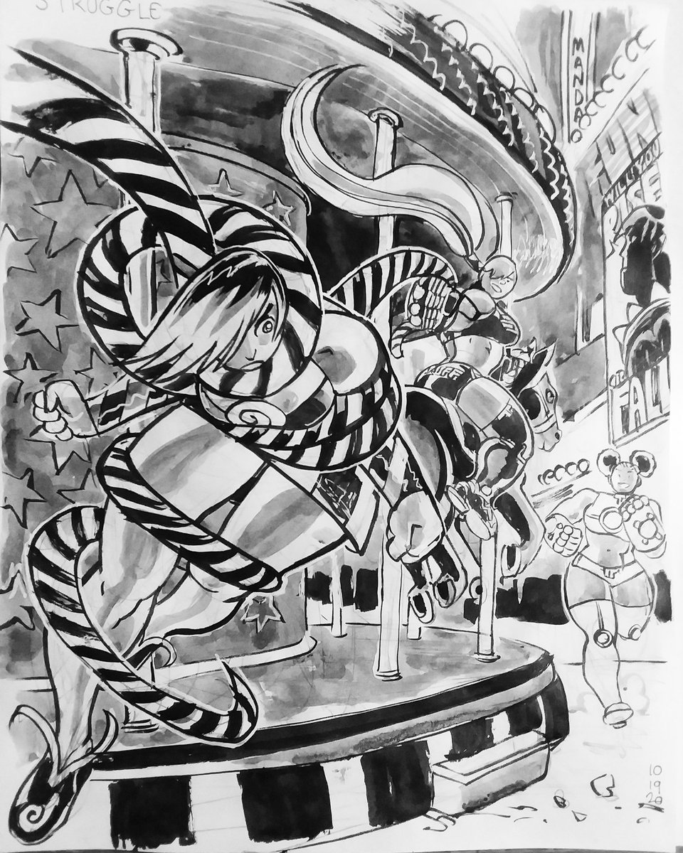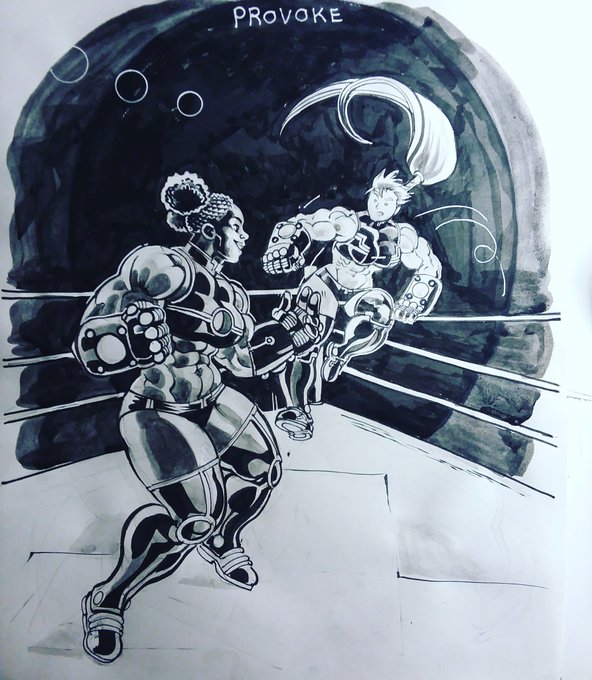Challenger Inktober day 1 I decided to do a Fisticuff fighting contest themed month and made up a list of prompts. Hopefully future days are less ambitious. #artwork #inktober #bigstrongwoman #fisticuff