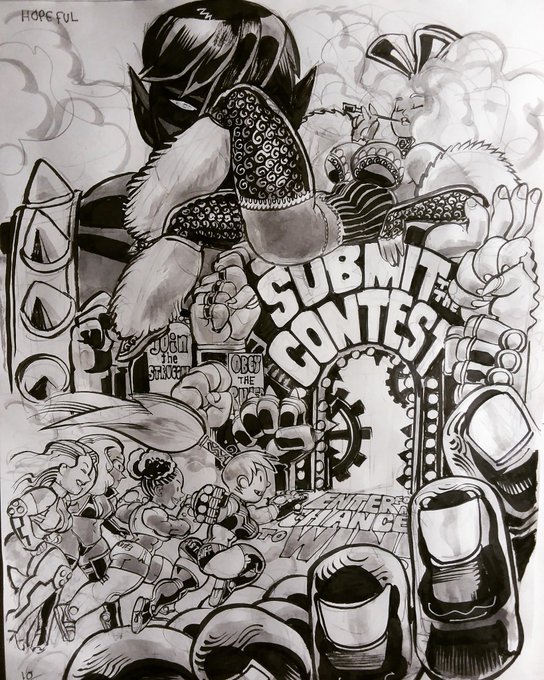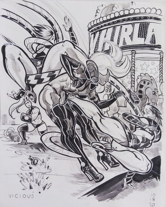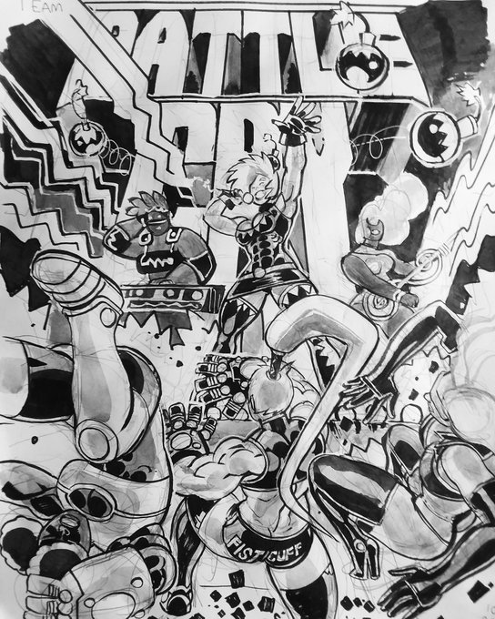 Overwhelm Day 11 part 2 Fisticuff and crew are topsy turvy as Turnbuckle and the Beatchiks turn the tables! #artwork #bigstrongwoman #inktober #fisticuff #alterkate #bling #turnbuckle