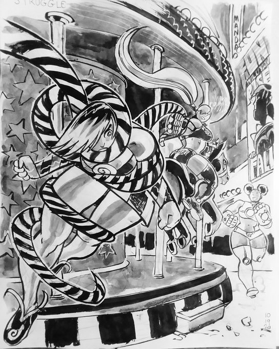 Clinch Day 8 or 9? Fisticuff and Bling come to grips! #artwork #bigstrongwoman #inktober #fisticuff #alterkate #swagger #bling #termagant