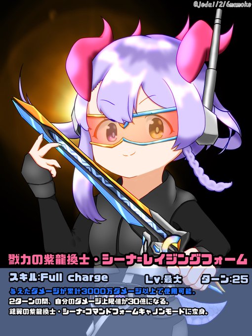 2 6 【戮力の紫龍換士・シーナ レイジングフォーム】 龍換士・シーナがデザイアドライバーとコマンドツインバックルで強化した姿。 エントリーフォームを経由しているため、龍換士としての能力は制限されている。その分基本ステータスが高く、この形態でも敵の殲滅は可能。 #パズドライラスト 23/01/28 15:14