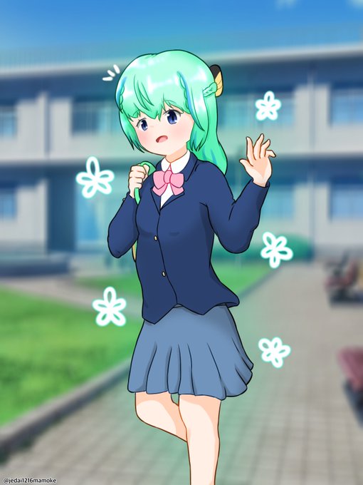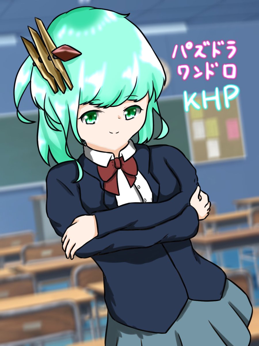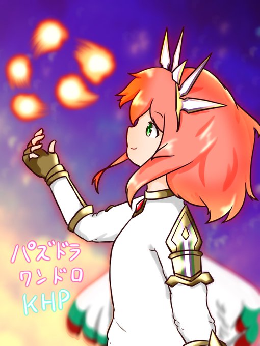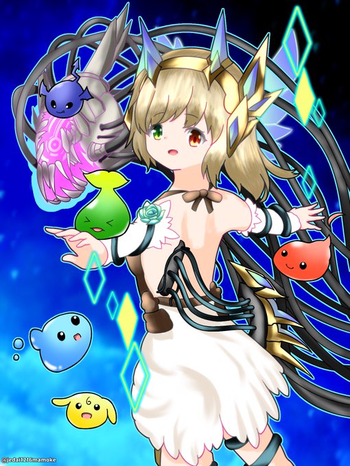 シェアトさん…ではなくてクヴィアさん! シェアトさんとの違いは髪色が濃かったり、髪飾りは右にひとつだけ。(究極進化では両方にあるが、左側のみ金属部分が2本だけ) シェアトさんとは同学年ということは姉妹ではなく双子に近い関係なのかな? #パズドラワンドロ