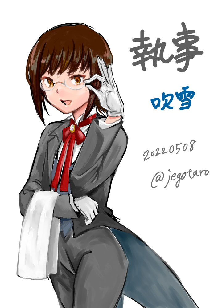 #吹雪版深夜の創作60分一本勝負 @fubuki1draw お題:「執事」 遅刻すみません… 線画なしでダイレクトに塗りつぶしてみました。 これめっちゃ早いけどちゃんと勉強しないと難しい 「執事も吹雪におまかせください!」