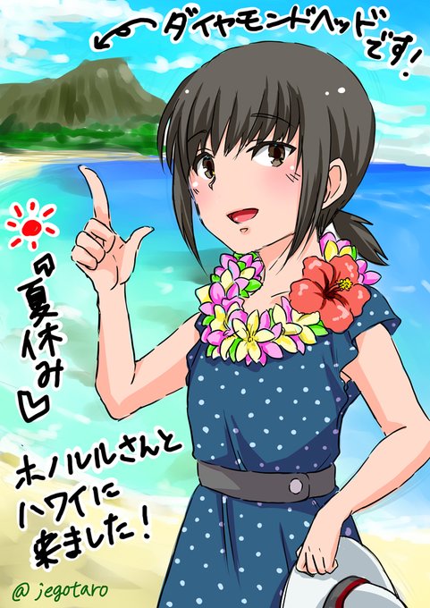#吹雪版深夜の創作60分一本勝負 @fubuki1draw びええええ遅刻すみません!! お題:「夏休み」 たまたま夏季休暇が被ったホノルルと吹雪はハワイにいる。 仲良くやっているようでなによりだ。 送られてきた写真をみてほっこりした気持ちになり執務を続ける。 幸い大淀にはバレていないようだ。