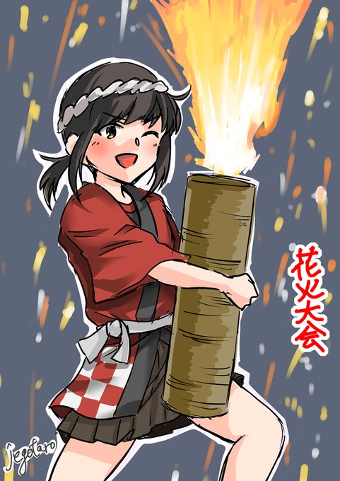 #吹雪版深夜の創作60分一本勝負 @fubuki1draw 大大大遅刻大変申し訳ありません… お題:「花火大会」 吹雪「司令官!今から吹雪が夜空におっきい花火、打ち上げますよ!!見ててください!!!」 提督「嫁の打ち上げる花火をみれるなんて生きててよかった…」