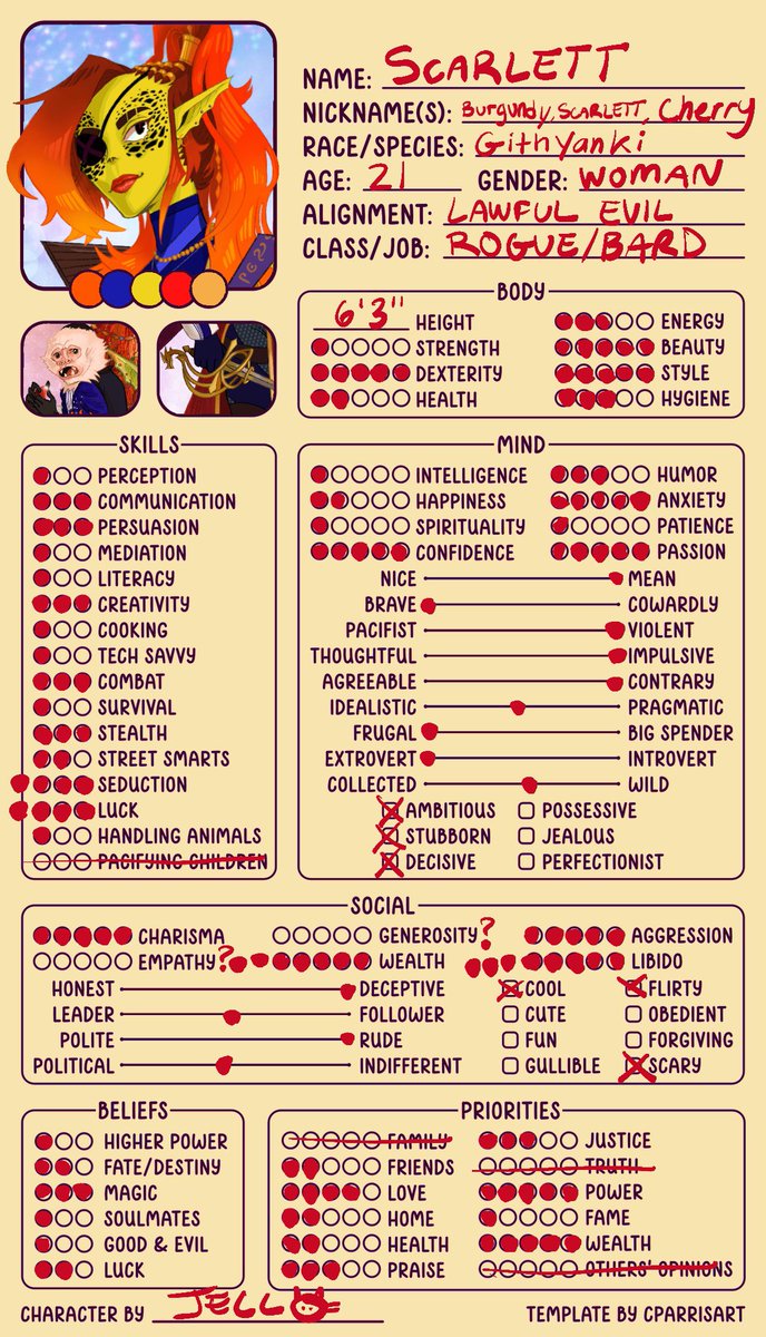 I finally get to share more of who this character is! There was so much mistrust and lying involved in the roleplay for this character that was really fun to explore. #DnDcharacter #dndart #dnd5e #githyanki #monkey #charactersheet