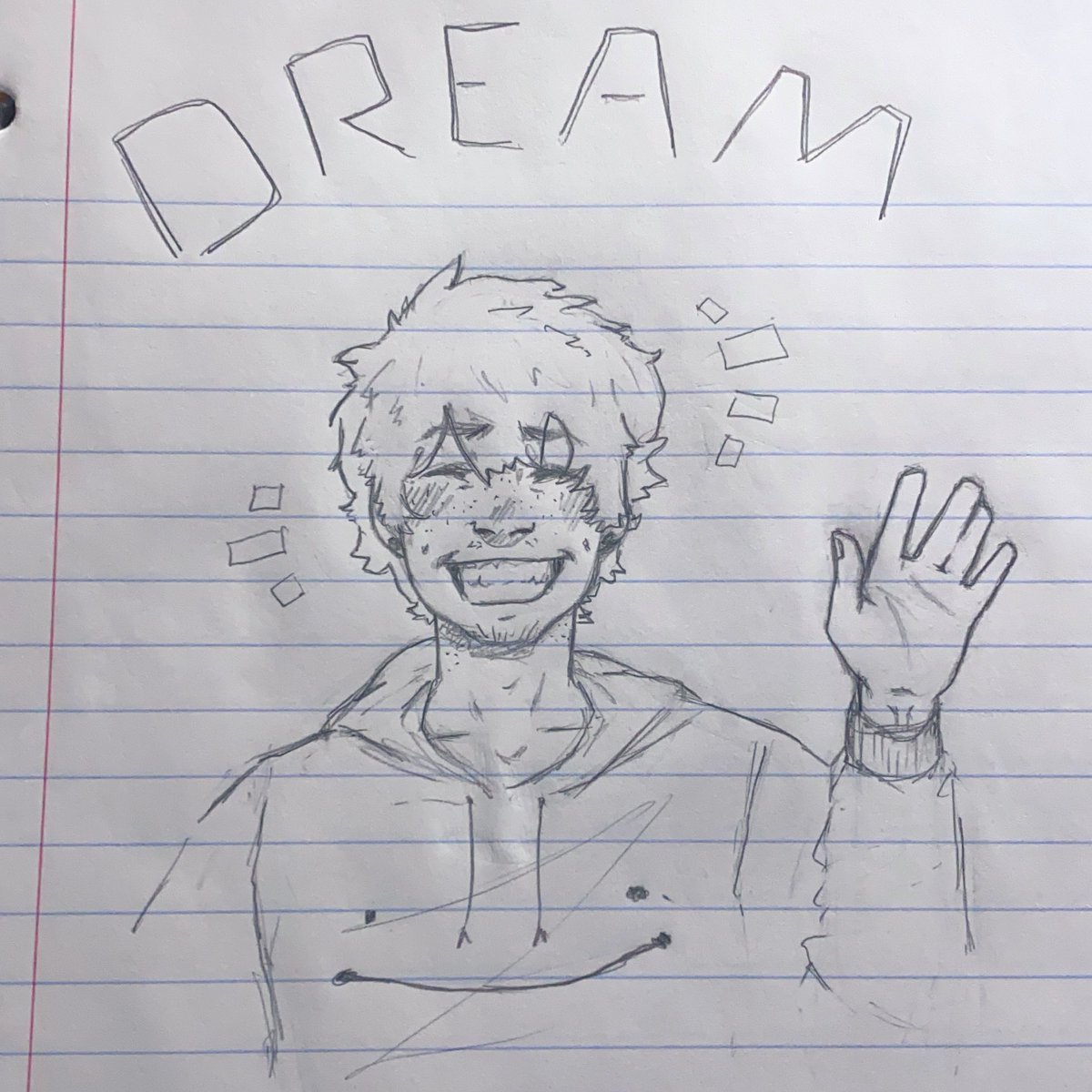 been anxious all day and imagining dream do that thin-lipped white person smile always makes me laugh so here’s a sketch of it LOL #dreamfanart