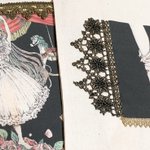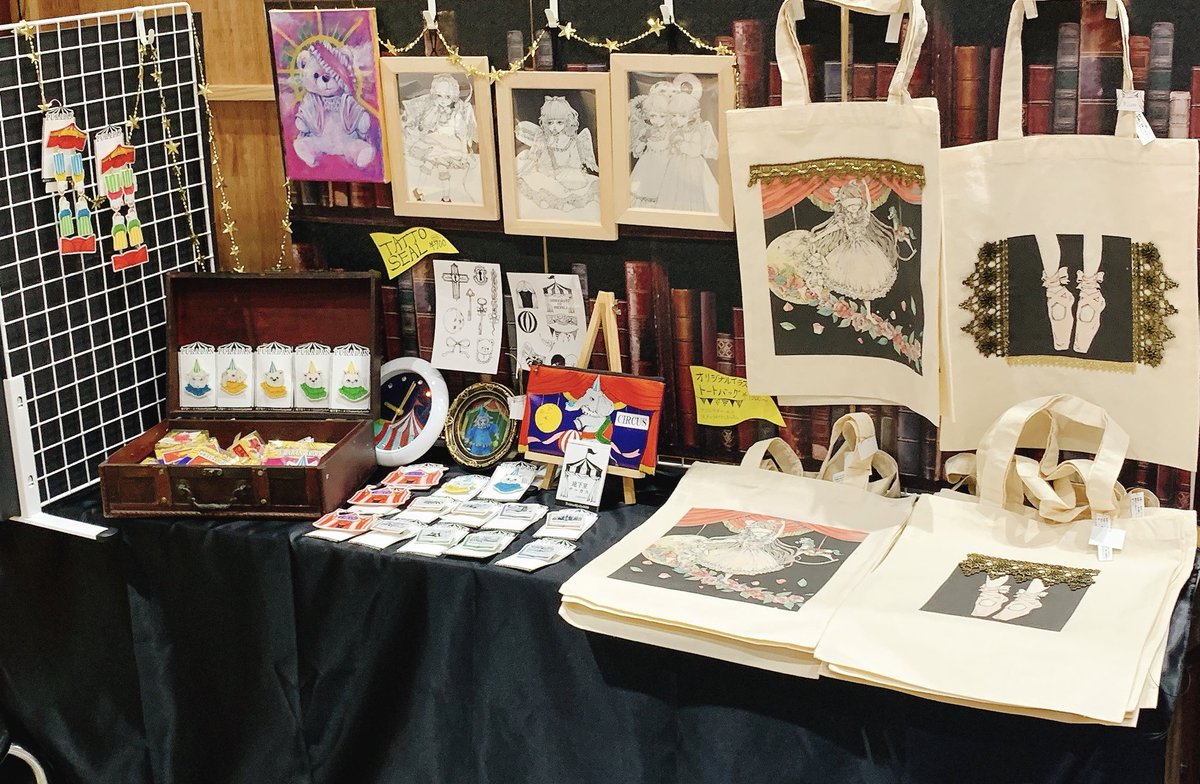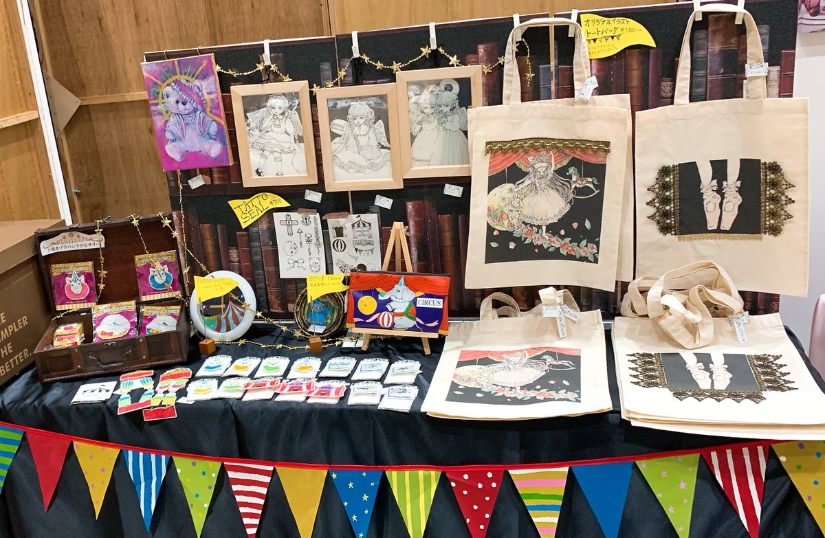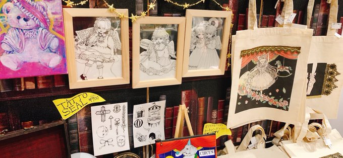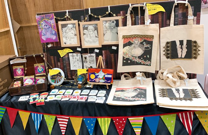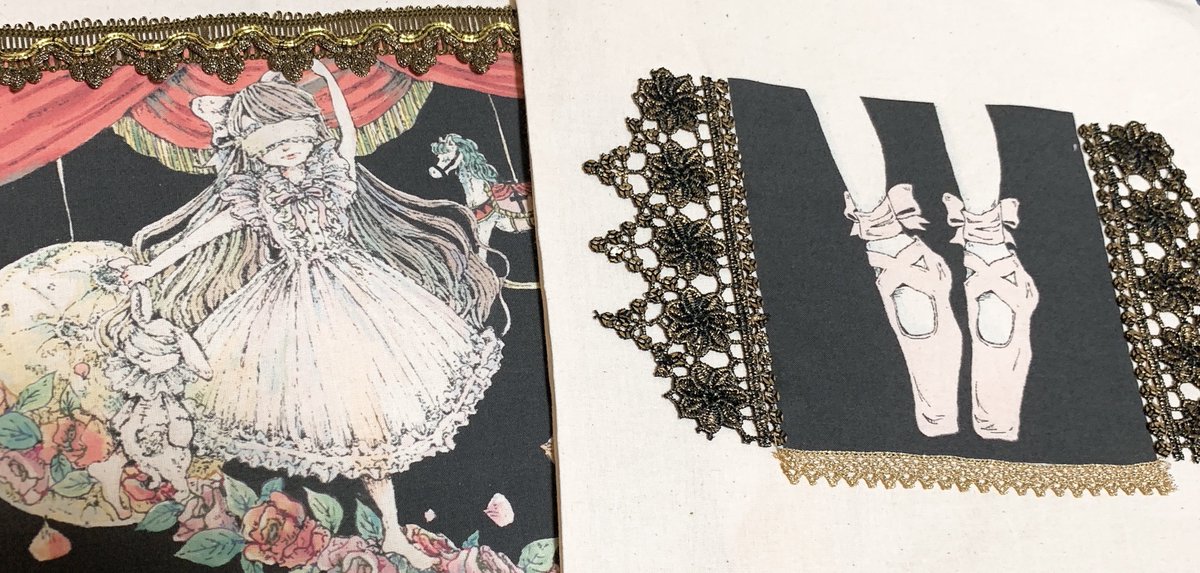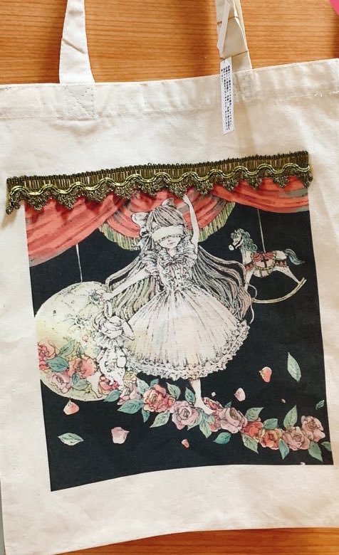 #デザフェスお品書き トートバッグ2種類 1000円(レースやラメブレードを縫い付けていないもの)〜縫い付けているものはそれぞれ値段がついています シワのつかない送り方を模索中で通販できないので今のところお買い求めいただけるのはイベント販売のみです…! #デザフェス55 #イラスト