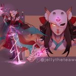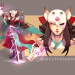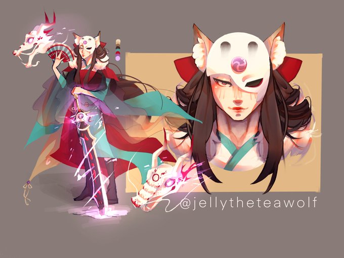 Pt. 2 of my #GenshinImpact x #Onmyoji character design series, this time a mashup of SSR Tama Mono Mae and Beidou :v Plus a bonus portrait comparison between my Scarakaze and Beidou-Mono-Mae designs :v #fanart #原神 #阴阳师 #characterdesign #genshinimpactfanart #onmyojifanart