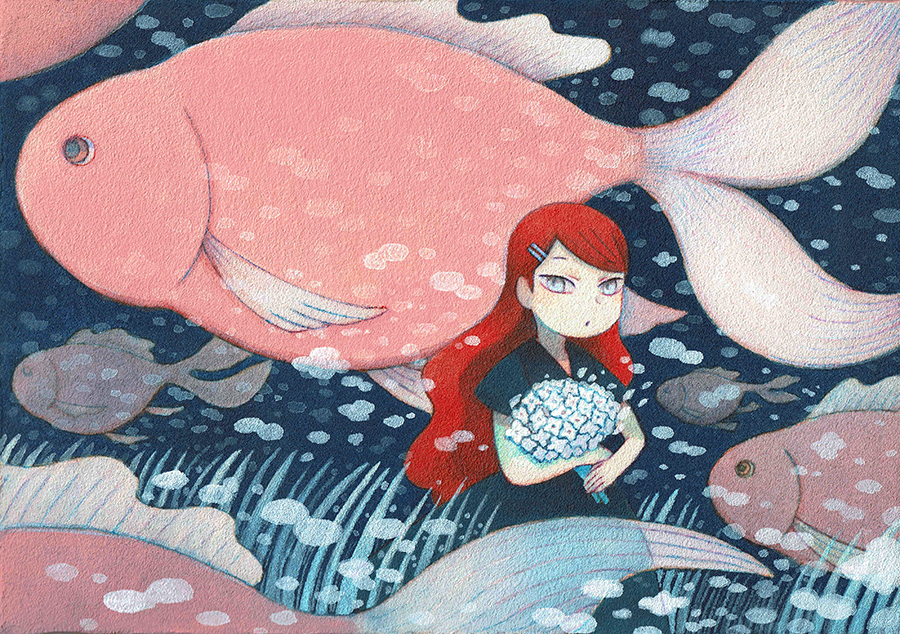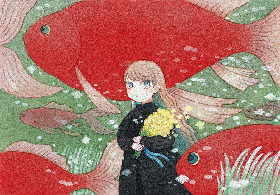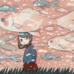 #アナログ作家フェス #アナログ作家フェス_アクリル 企画参加いたします!🎨 よく女の子と魚や動物を一緒に描いてます