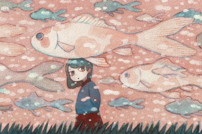 14 71 #アナログ作家フェス #アナログ作家フェス_アクリル 企画参加いたします!🎨 よく女の子と魚や動物を一緒に描いてます 21/11/28 10:45