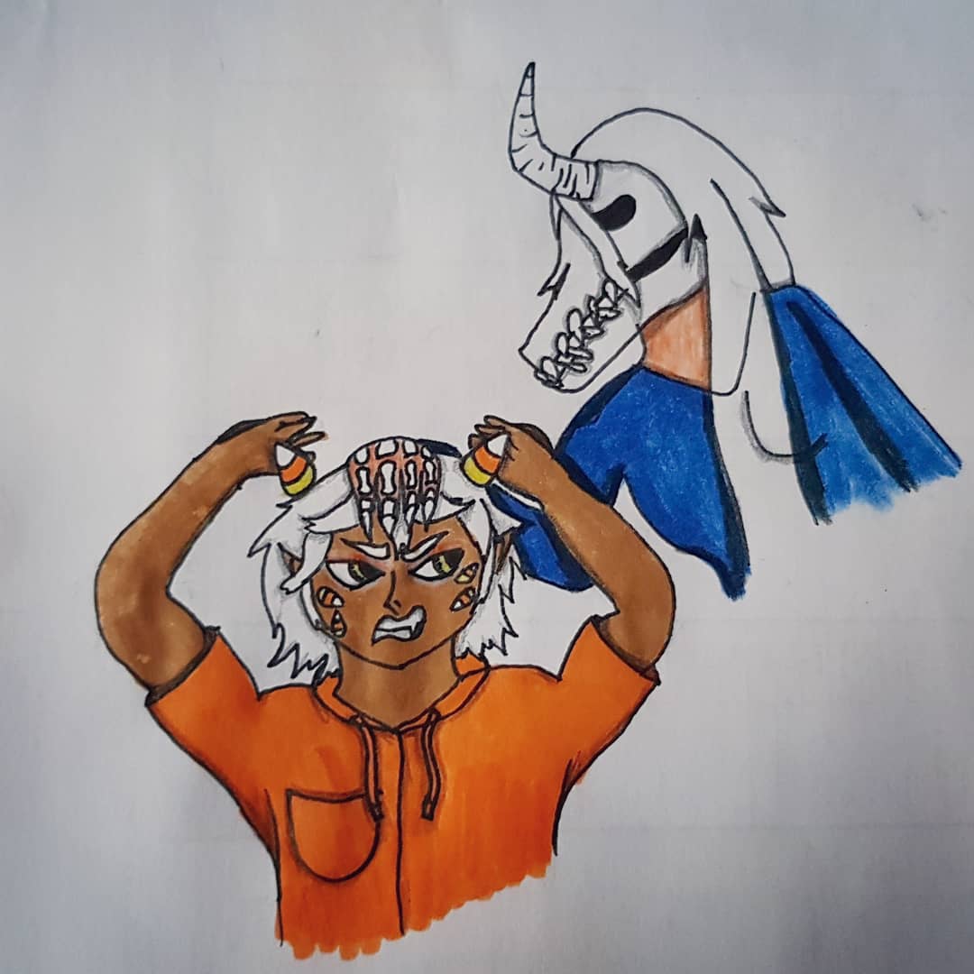 @MidnightPursona Here's a little fan art of you candy corn demon cosplay and Willow. Hope you'll like it. 😁 #oc #occosplay #wendigo #wendigooc #willow #demon #candycorn #candy #draw #fanart #cosplay #cosplayer #cute #halloween #horror #halloween2019 #halloweendrawing
