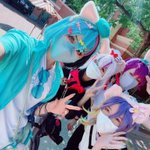 Met my son IRL (?) and Yugo said “Uki... TSKR” I FLUSHGE 😳 also if someone know them, please let me know, I wanna tag them 🥺 #ukiform #UkiVioleta #AsumArt #YugoAsuma #AlbanKnoxArt #AlbanKnox #ACGHK2022 #cosplay