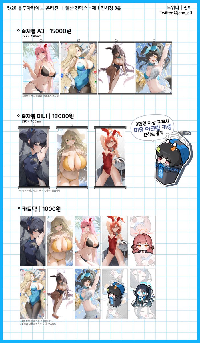 1/29(일)✨일러스타페스(@illustar_fes)✨블루아카이브 부스 참여합니다! 전상품 소량 준비되어 있습니다💙일요일에 만나요~ 🎟입장권 예매▶booking.naver.com/booking/5/bize… 🎁A3족자봉, 카드택, 증정용 미유 아크릴 키링 📌학여울역 SETEC 1 · 3관 ▶ 일요일 >>i 08<< 부스