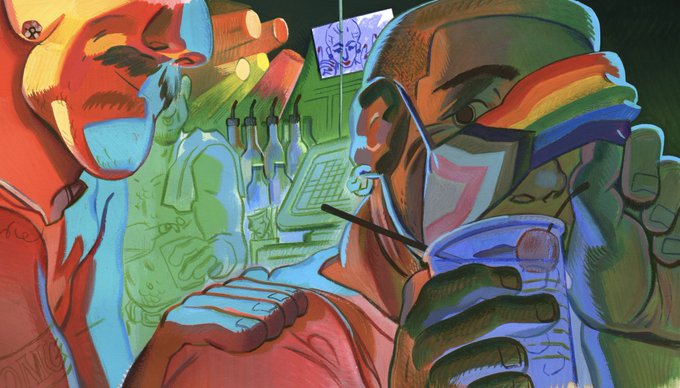 I did an illustration for the New Yorker (my very first) to accompany an article by Bryan Washington on visiting gay bars during the pandemic A big thank you to my AD Nick Konrad nyer.cm/bnBIIdT