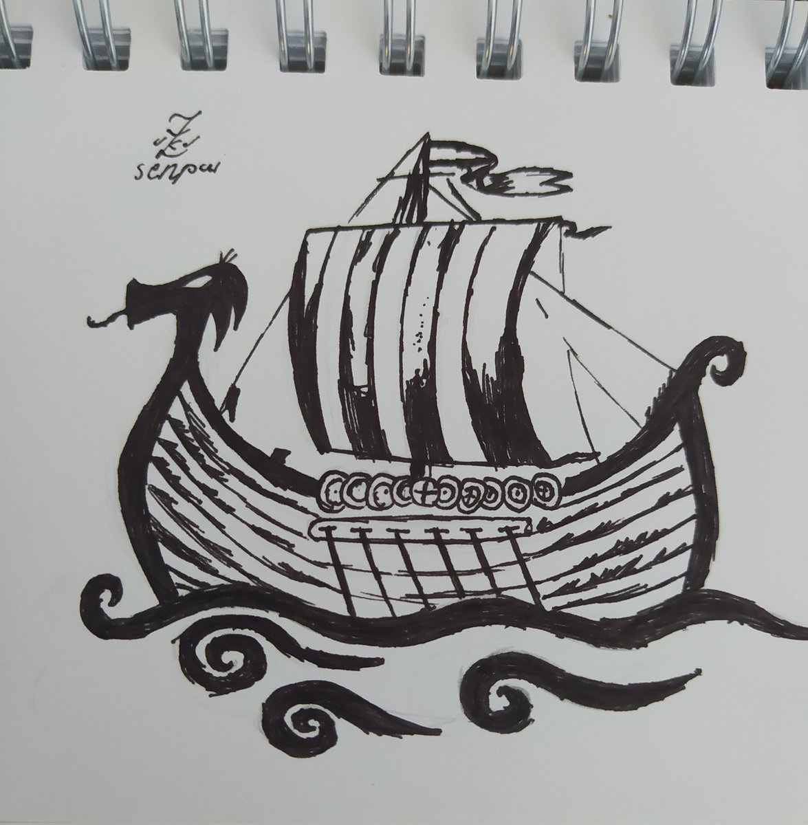Day 3:vessel This one was a little bit challenging than the others,and the area of the word is quite big as well,so the Viking vessel going to raid #Inktober #inktober2021day3 #inktober2021 #drawing