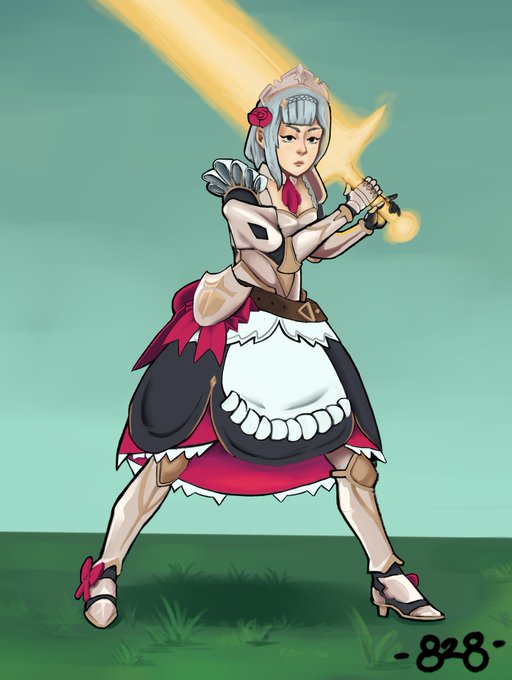 the last member of my OG party, Noelle! did a quick background for her cause I'm still finishing up the group shot wip 😄✨ #artph #genshintwt #genshinimpactfanart