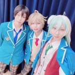 enst/Cosplay※コスプレ 捏造衣装黒スーツ ‧✧̣̇‧Trickstar‧✧̣̇‧ 💙 @cos_hanaka 🧡 @yuuna_521 💚 @jerky00 ♥️ @Yts2i0_3nh 📸 @poponnu321 🏠 @hacostadium_t シックでかっこいいを目指したトリスタ❣️