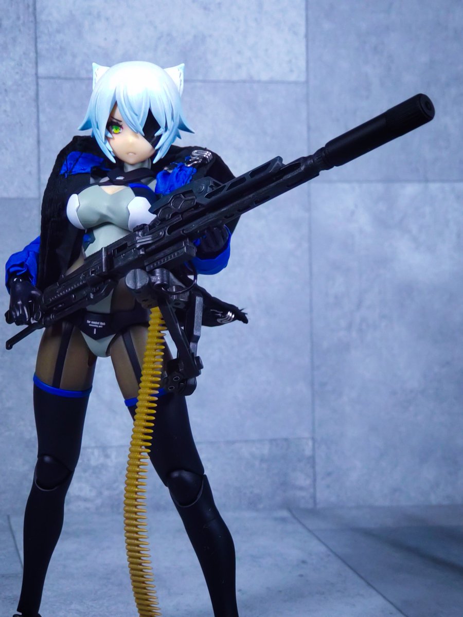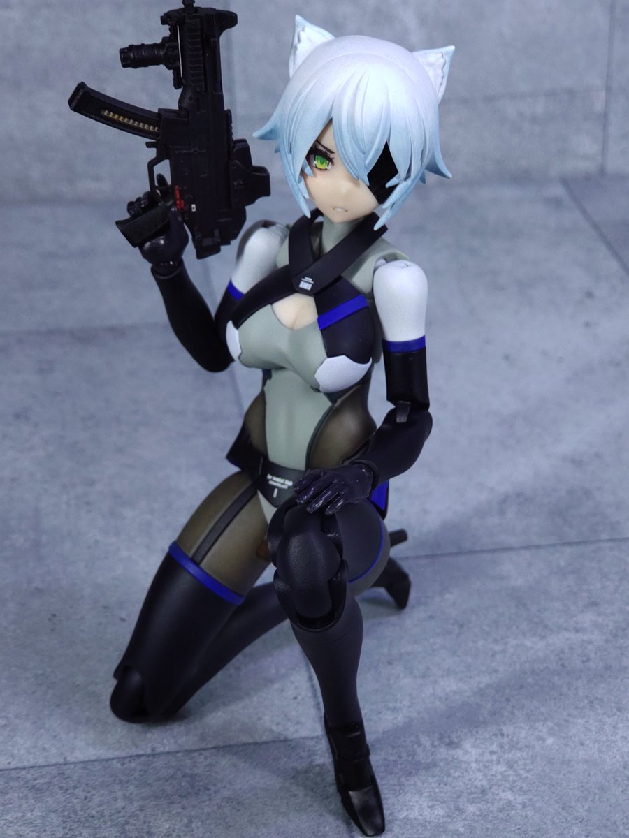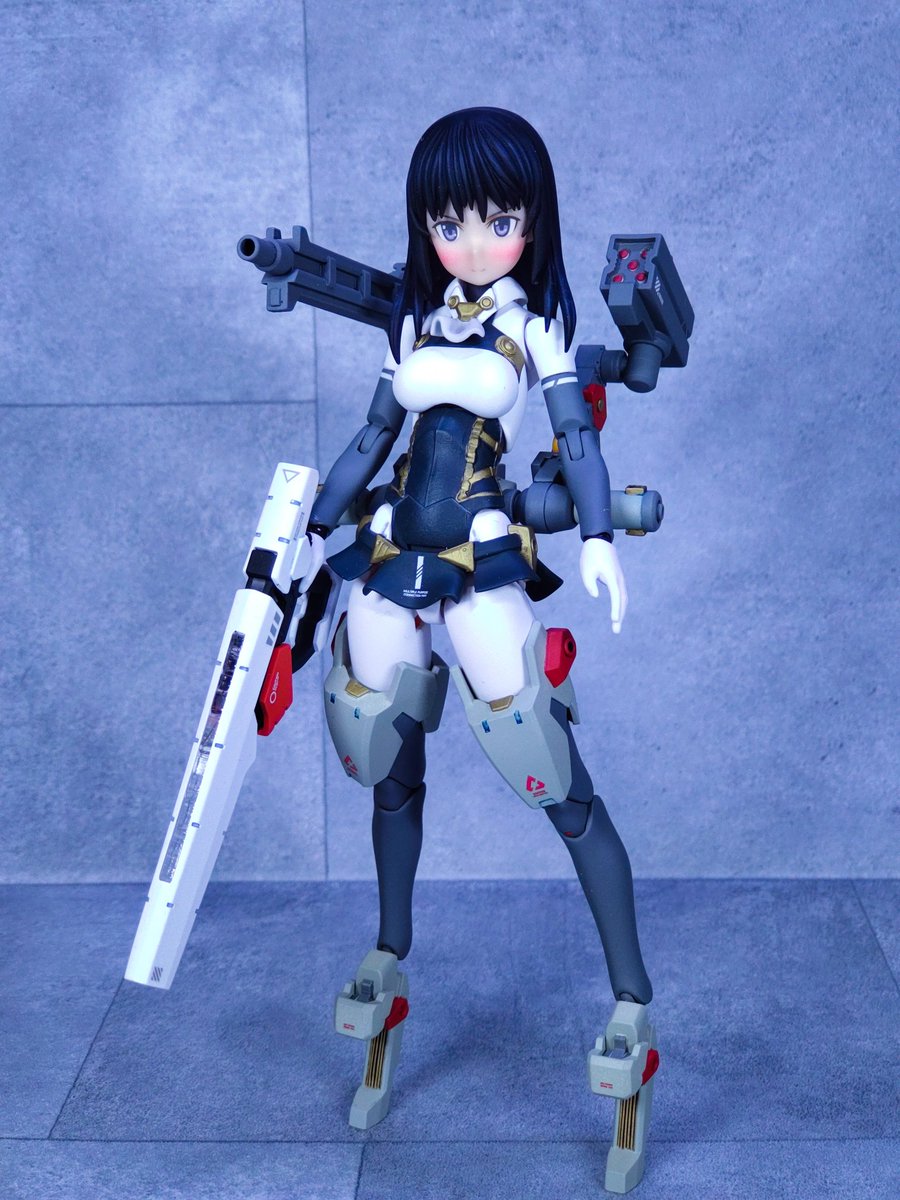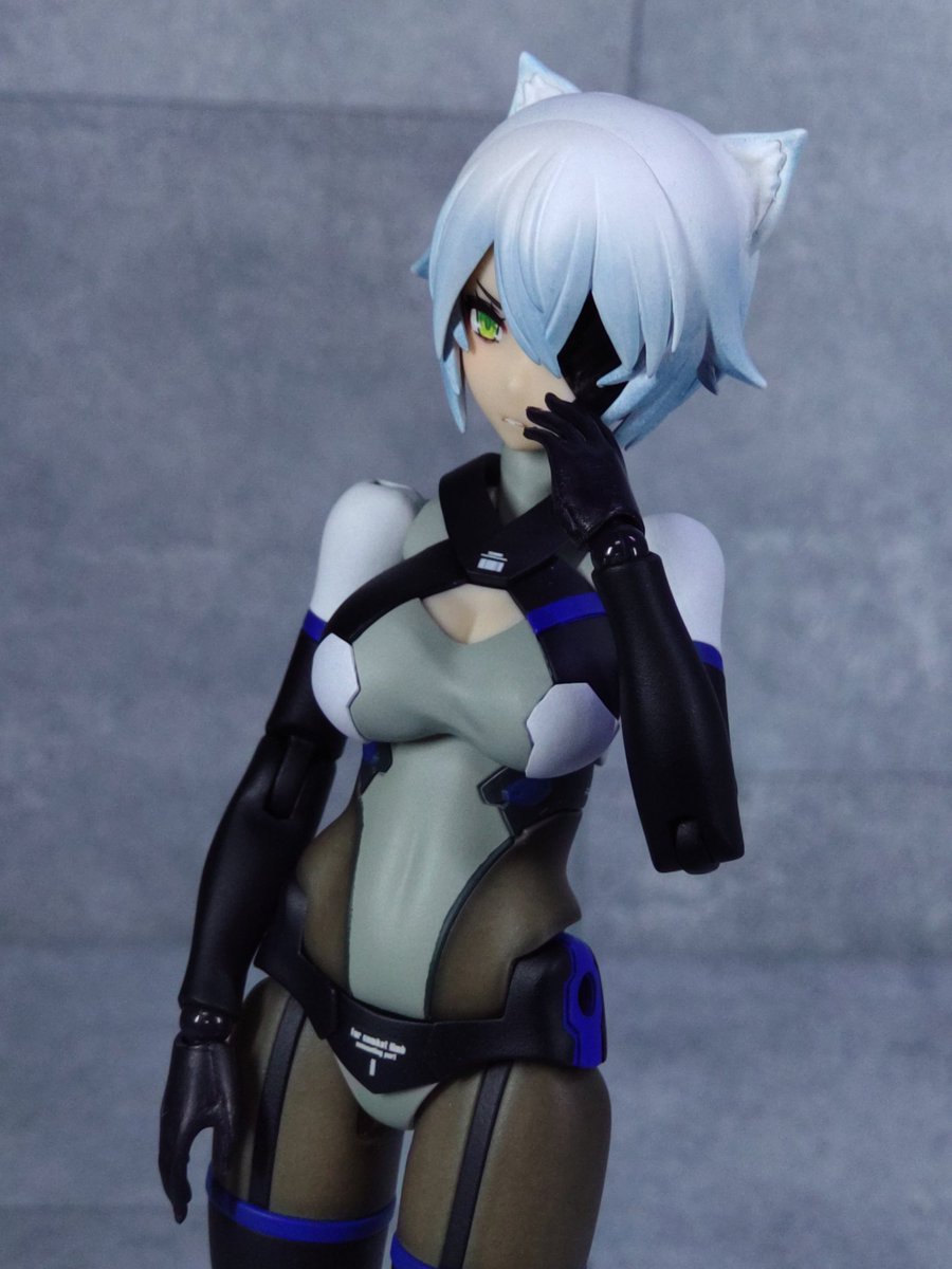 極度のコミュ障から来る寡黙さと原型機にまつわる先入観から周囲には威圧的な印象を持たれがちだが、本人は温和な性格でカワイイものが好き等の一面もある。頭部の猫耳アクセも本人の希望で所有者にカスタムしてもらったもの。 とはいえ原型機譲りの素体スペックの高さは健在。 #メガミデバイス