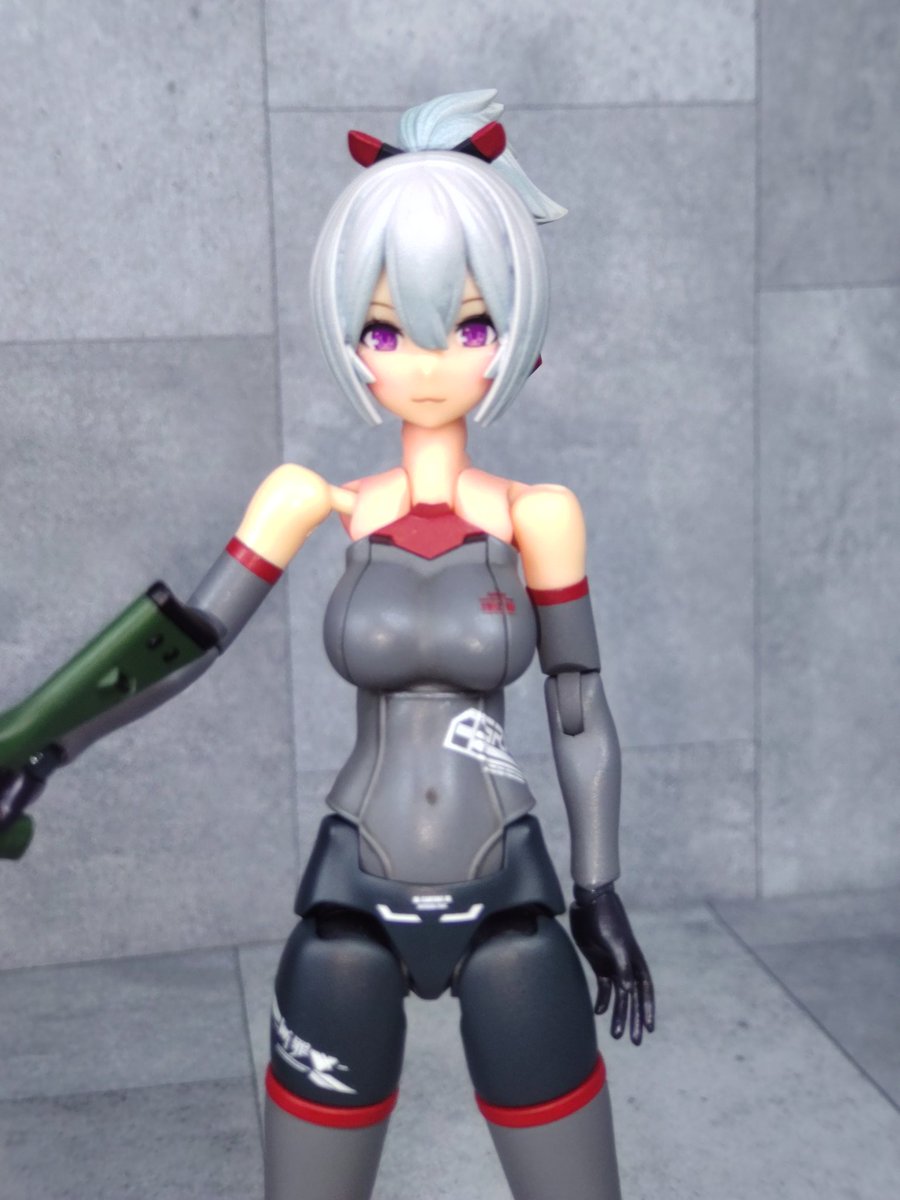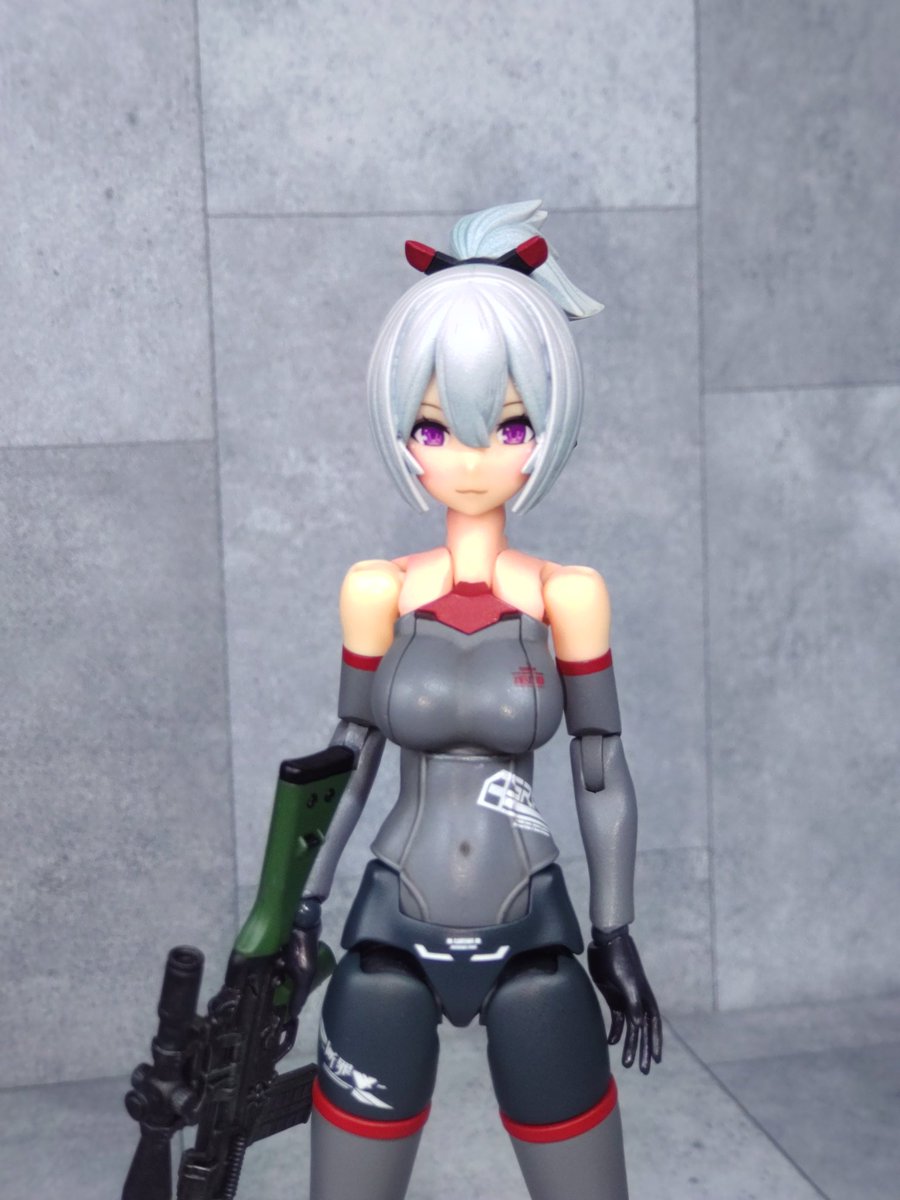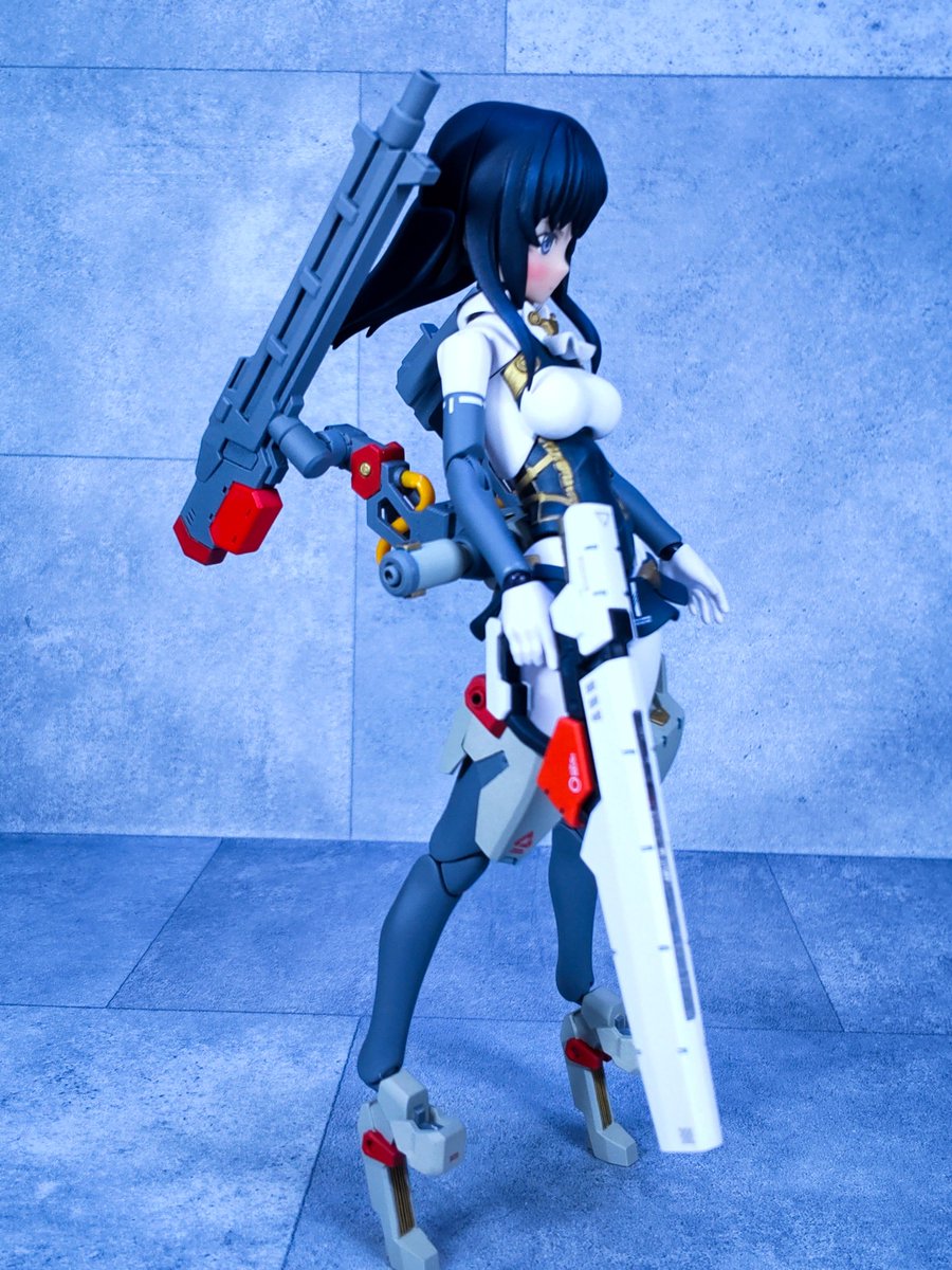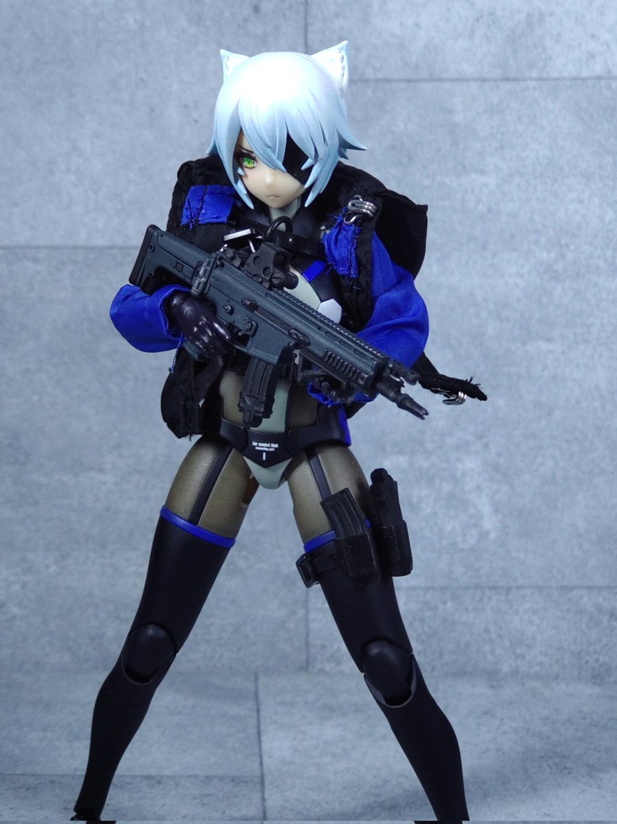 極度のコミュ障から来る寡黙さと原型機にまつわる先入観から周囲には威圧的な印象を持たれがちだが、本人は温和な性格でカワイイものが好き等の一面もある。頭部の猫耳アクセも本人の希望で所有者にカスタムしてもらったもの。 とはいえ原型機譲りの素体スペックの高さは健在。 #メガミデバイス