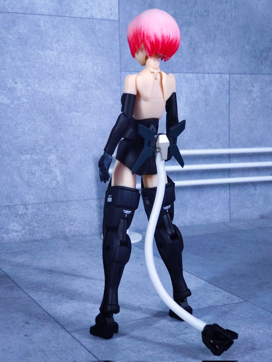 うちの子メガミEL-MAXさんを補修ついでにメガミボトムス&トップスでアップデート。トップスのスキンカラー間違えてヘッドパーツをパステル調色で馴染ませる手間を経たのはここだけの話。 #メガミデバイス