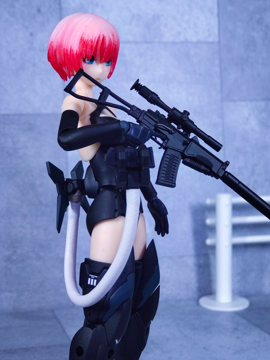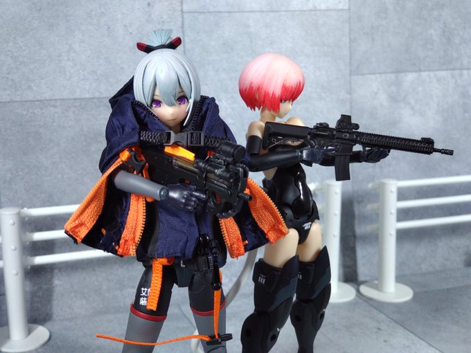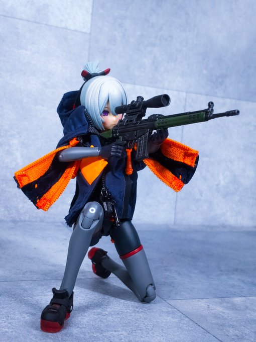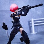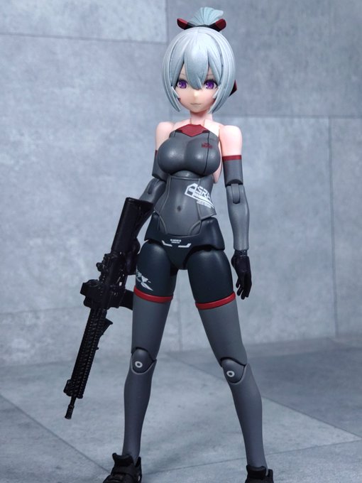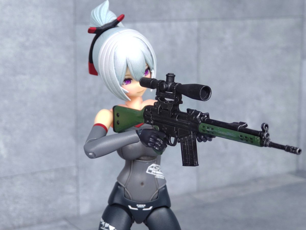 美少女可動素体としては格段に銃を自然に構えやすいメガミですが、それでも流石に長物によっては両手で肩当て姿勢は難しいので、肩ボール部分に引き出し機構を仕込んでより可動範囲を拡張してみる試作。効果は上々かな。 #メガミデバイス