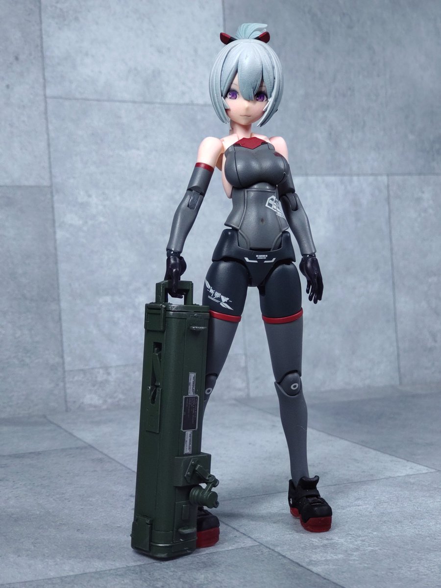 9 46 極度のコミュ障から来る寡黙さと原型機にまつわる先入観から周囲には威圧的な印象を持たれがちだが、本人は温和な性格でカワイイものが好き等の一面もある。頭部の猫耳アクセも本人の希望で所有者にカスタムしてもらったもの。 とはいえ原型機譲りの素体スペックの高さは健在。 #メガミデバイス 22/05/06 22:26