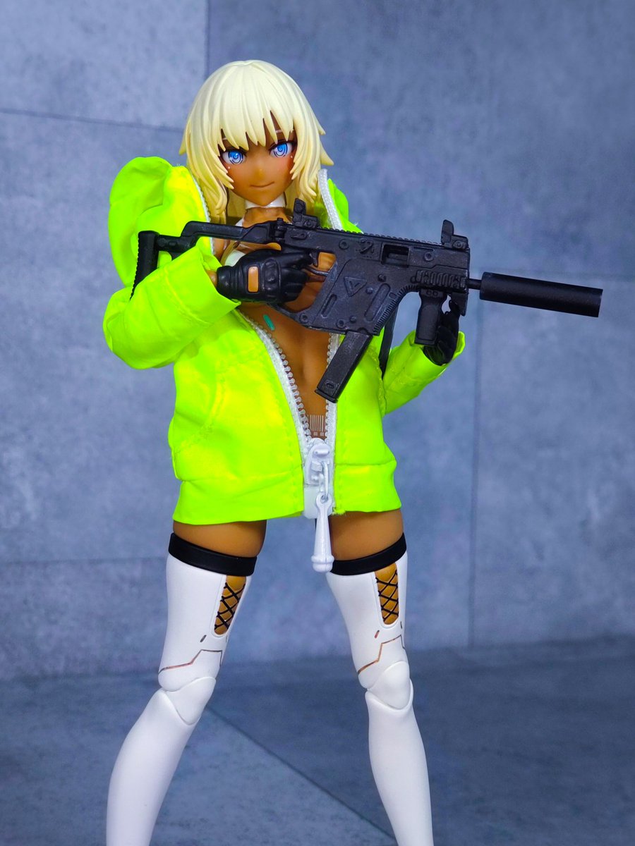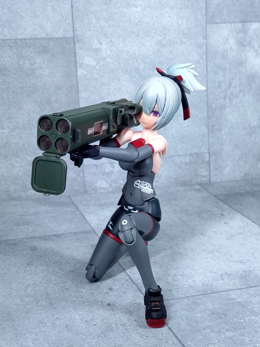 20 85 美少女可動素体としては格段に銃を自然に構えやすいメガミですが、それでも流石に長物によっては両手で肩当て姿勢は難しいので、肩ボール部分に引き出し機構を仕込んでより可動範囲を拡張してみる試作。効果は上々かな。 #メガミデバイス 23/04/16 13:33