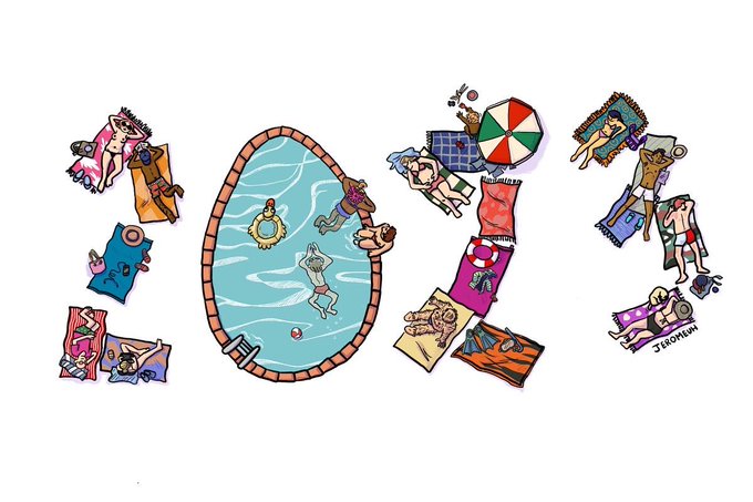 Je vous présente mes vœux pour l’année à venir, tant que j’y songe, avant d’être pris dans les fêtes. Plein de bisous virtuels! #happynewyear #bonneannee #meilleursvoeux #happy2023 #2023 #dessin #illustration #comics #illustrateur #bd #plage #soleil #piscine #bronzage #happy