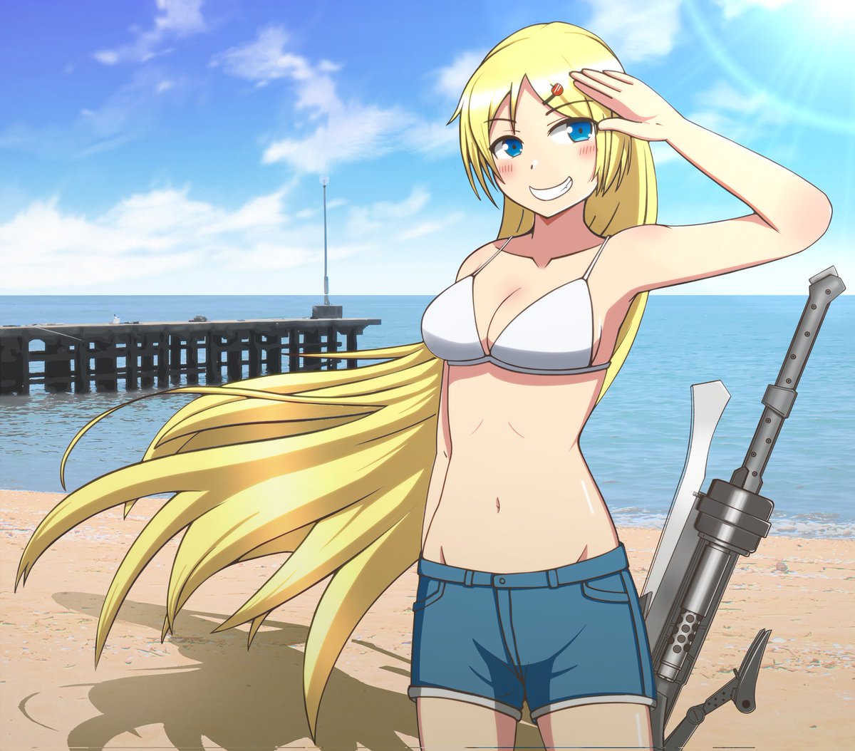 マスタングちゃんと海行ってキンキンに冷えたコーラも用意して夏満喫したいね…!! マスタングはポニテ下ろしても絶対可愛いと思うんですの。 #アッシュアームズ #アシュアート