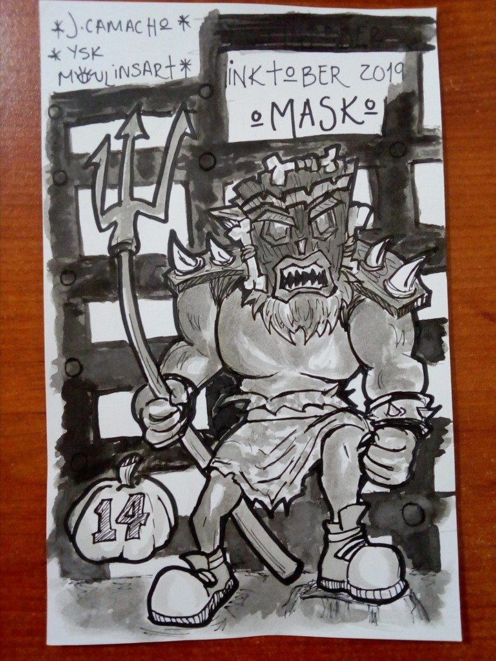 Día 14: Máscara Creo que como a muchos, los juegos de Crash Bandicoot fueron una linda parte de la infancia. No tenía pensado dibujar a Tiny y a Uka Uka, me gustó hacerlos. #inktober #inktober2019 #Inktoberday14 #drawlloween #Drawlloween2019 #crashbandicoot #tinytiger #ukauka