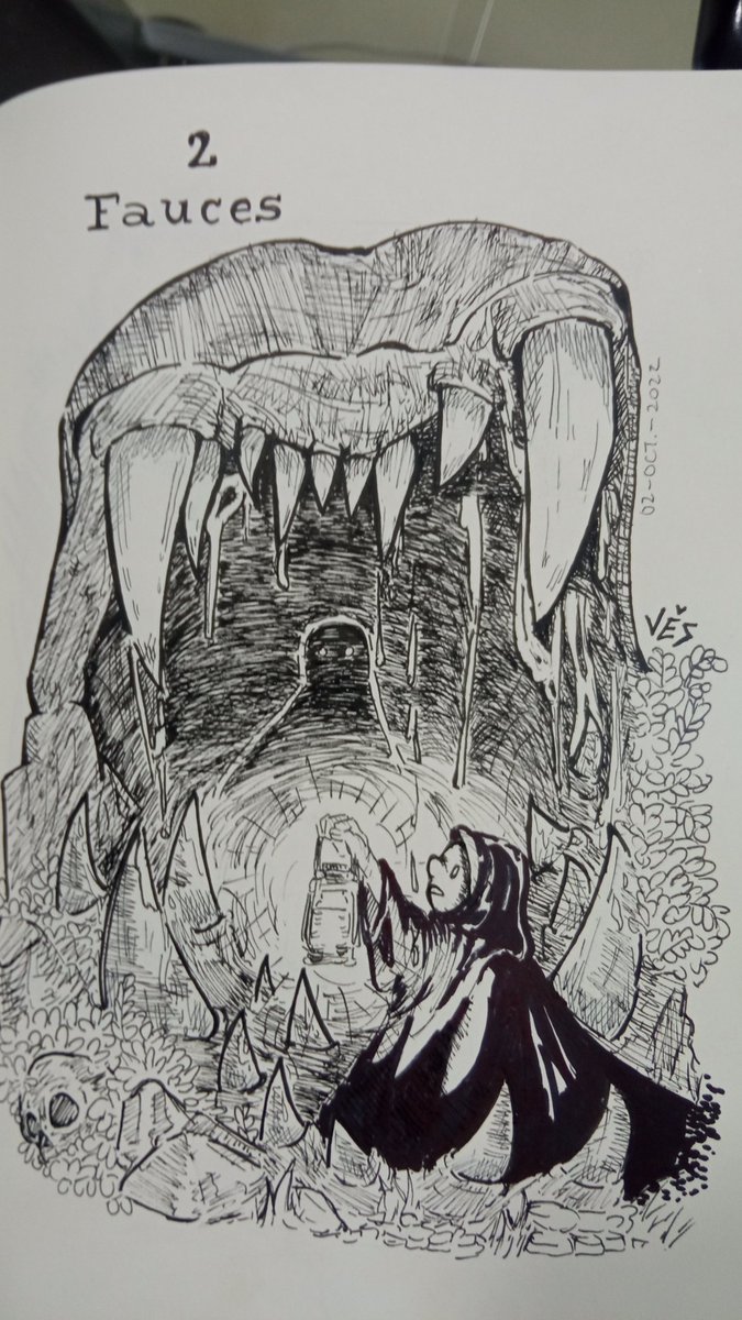 Día 2: Fauces A veces no todos los caminos nos llevan a sorpresas agradables 💀 #sketchbook #traditionalart #tinta #fauces #inktober #spookymonth