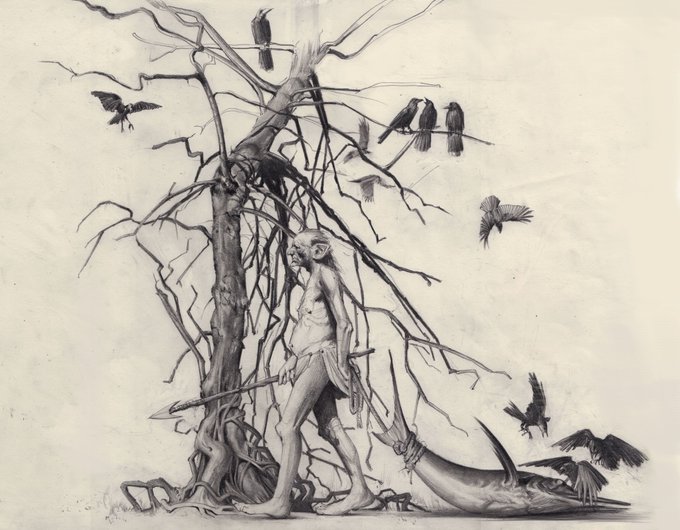 'Hunter' Finally finished this drawing, enjoy! Graphite on moleskine paper #hunter #drawing #art #artwork #artistsontwitter #pencildrawing #fantasy