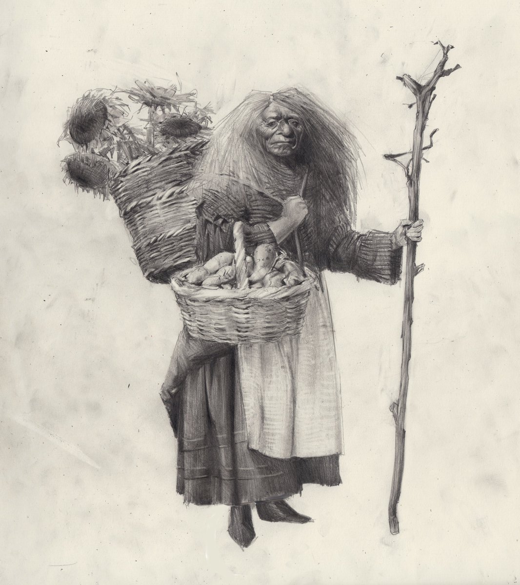 Harvest Witch 02 Turnips and sunflowers :) enjoy Graphite on moleskine paper #artistsontwitter #witch #sketchbook #drawing #artistsoftwitter #pencil