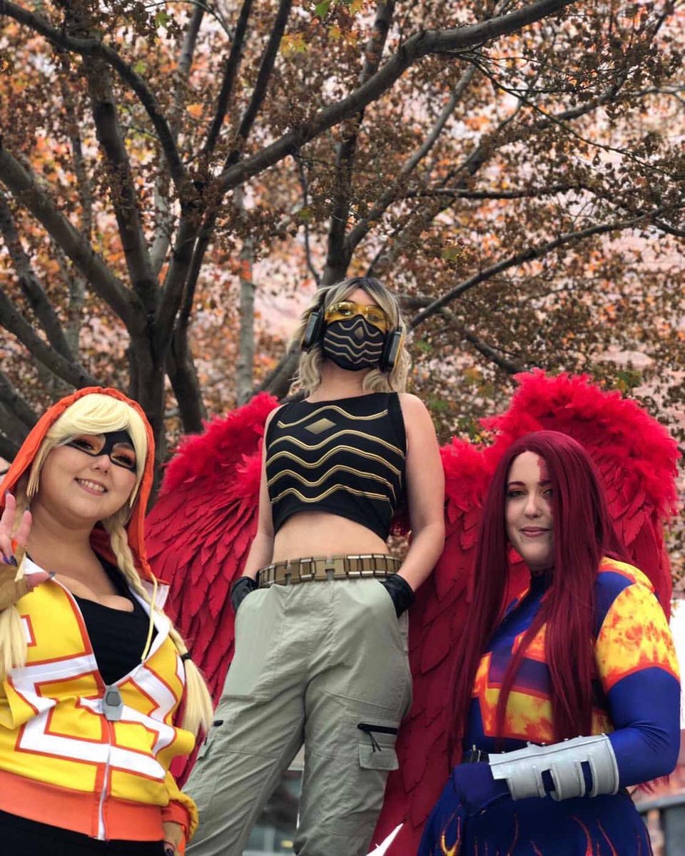 Happy #Halloween from me and my favorite Pro Heroes 🎃🪶🔥 #MyHeroAcademia #bnha #hawkscosplay #awacon2021 #cosplay