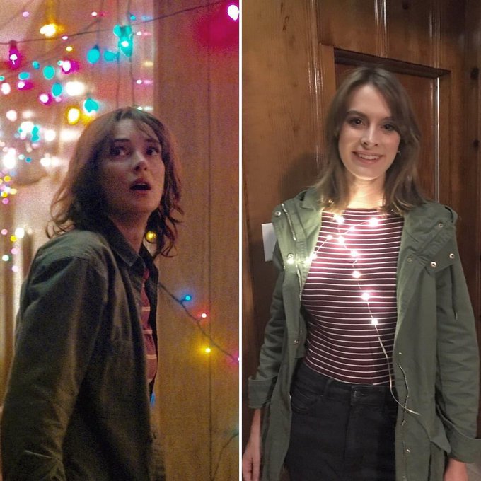 In honor of #StrangerThings4, here’s pictures from 2016, when my hair was still brown and I did a #cosplay as Joyce. 🖤✨ #StrangerThings