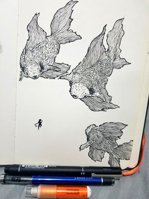 01 - Fish . Issue or no issue, I'm doing Inktober. It's what inspired me to study drawing seriously and to improve my skill. It's my personal pilgrimage to where it all began . #ink #inktober #inktober2020 #fineliner #unipin #illustration #drawing #practice #art