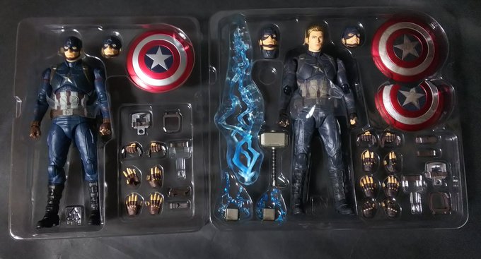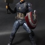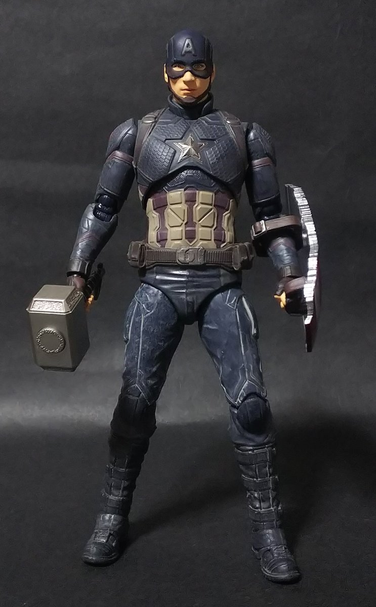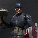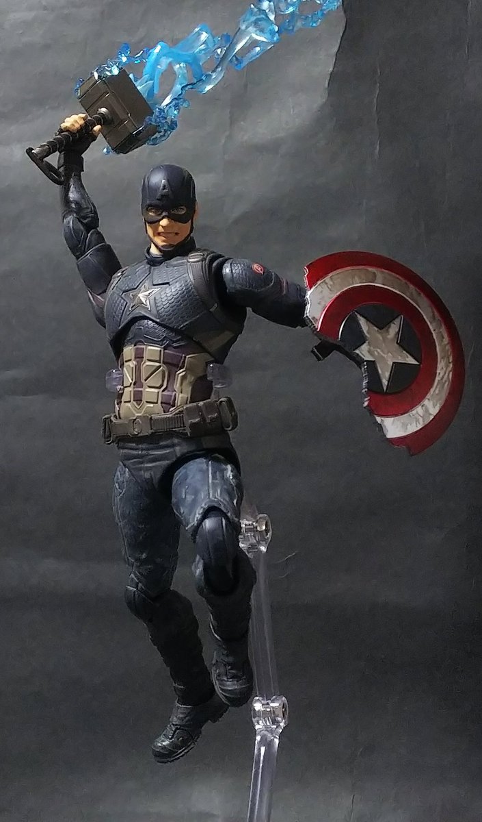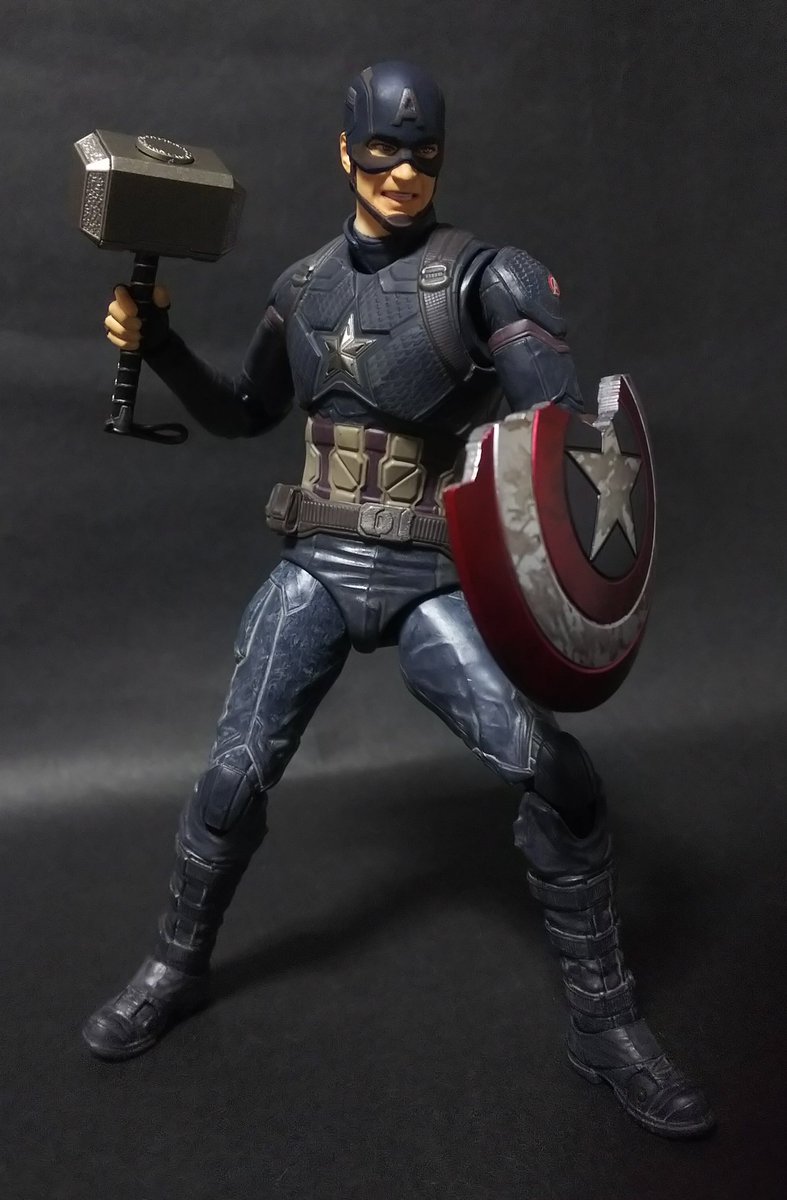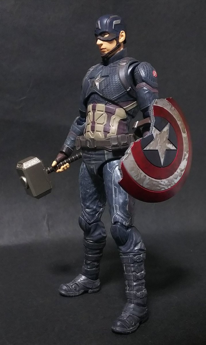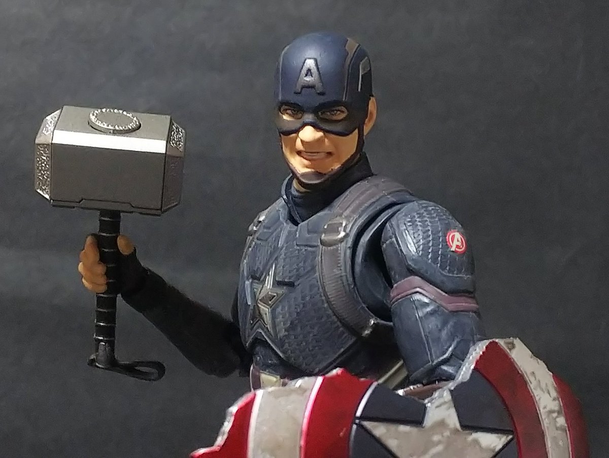 破損したシールドにムジョルニアも付属の盛り盛りアッセンブル! 素顔パーツの出来はトニーヘッドには及ばなかったけどアクション顔が付いているだけでも満足。 #キャプテンアメリカ #マーベル #t_nations #t_shf