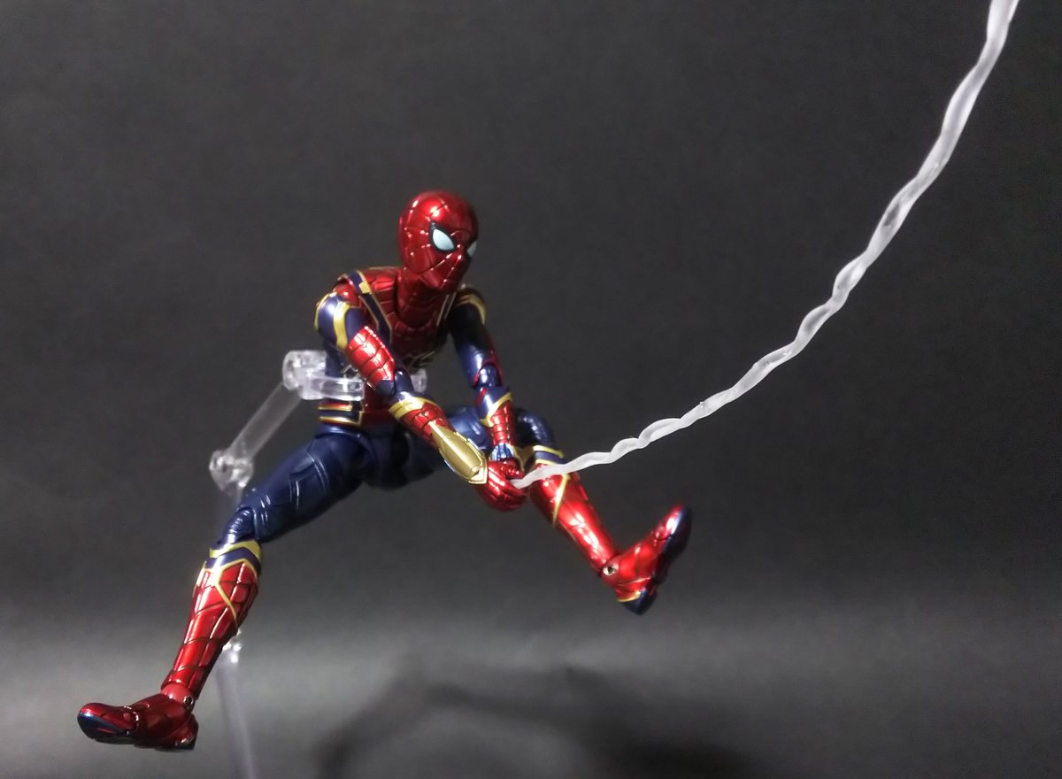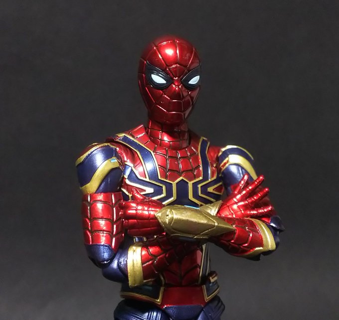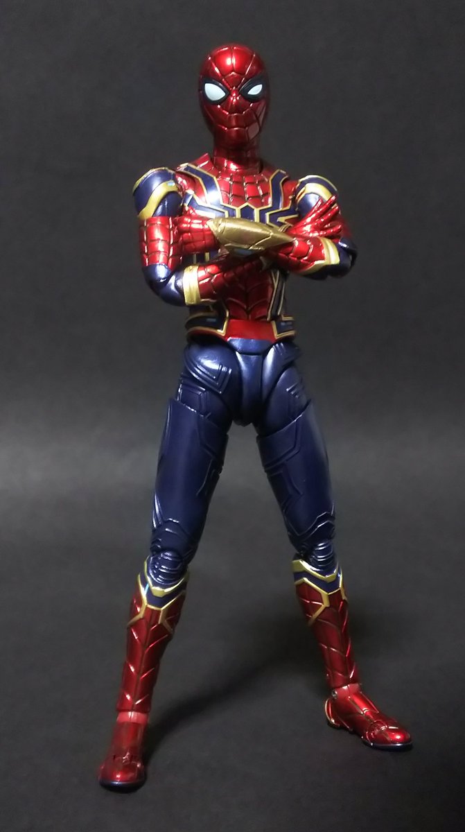 メタリック塗装でちゃんとアイアンスパイダーしてる。 塗装剥げに気を遣えば可動もかなりのもの。 眼のパーツは数パターン有り組み換えで表情付けが出来て楽しい! #アベンジャーズ #t_shf #t_nations