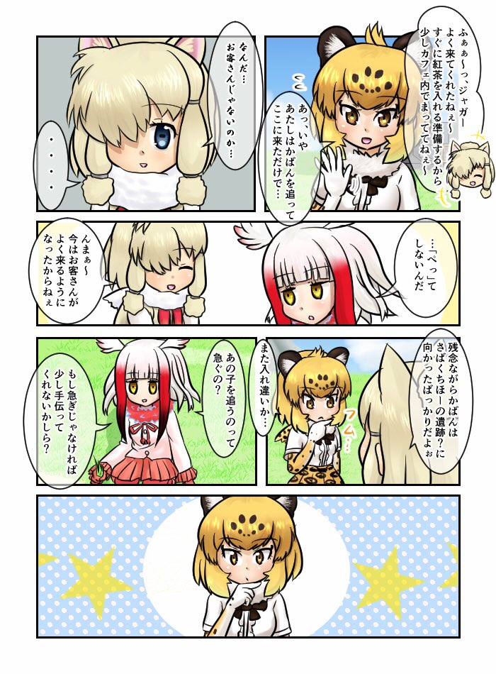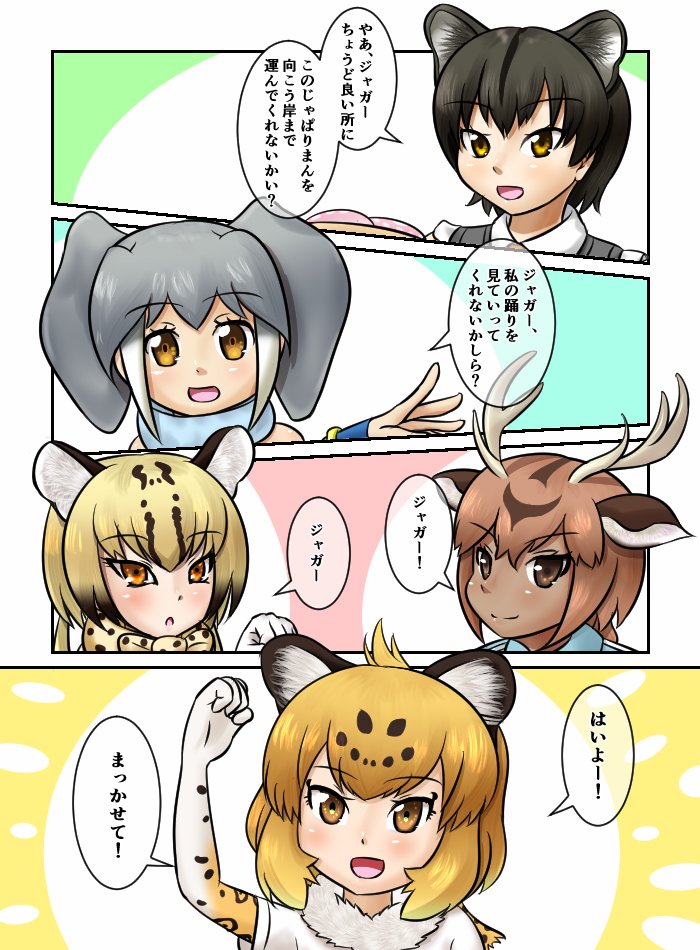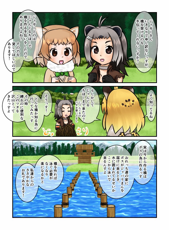 #けものフレンズ お願いジャガーさん 6話(1/?) だいぶ遅くなったけどとりあえず4ページ まだ途中までしかネームは描いてないけど、もしかしたら20ページくらいいくかもしれない…