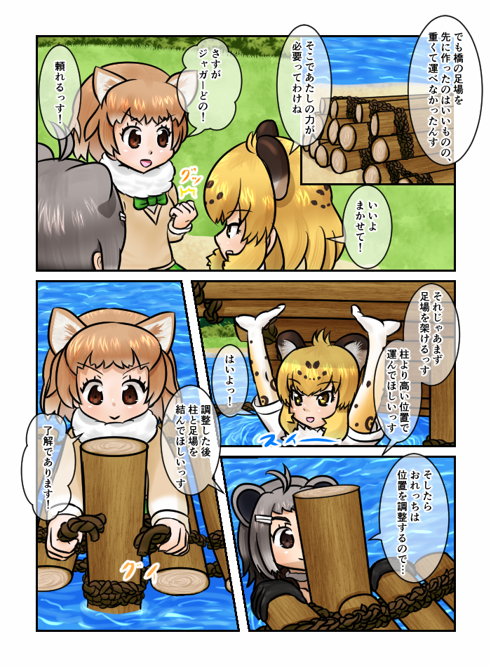 61 135 #けものフレンズ お願いジャガーさん 5話(1/2) ジャガー、ビーバー、プレーリーの橋づくり 橋の知識がないとこんなもん 18/12/18 22:37
