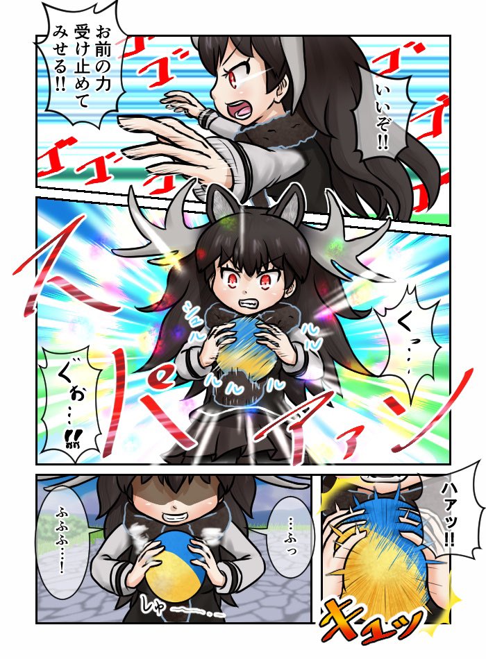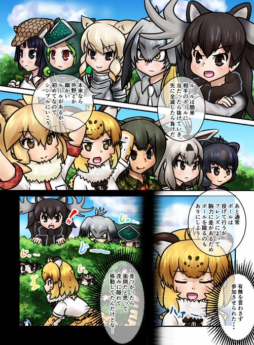 26 53 #けものフレンズ お願いジャガーさん 6話(2/?) たまたま1ページ1人ずつヘラジカチームが脱落していく あと何ページで終わるかは描くたびにコマ数が変わるためまだ分からん 19/03/13 20:54