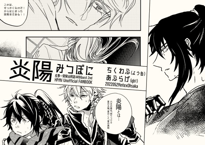 30 126 『炎陽』A5/P16 100円 あぶらげさんとの突発合同誌です。それぞれテーマに沿ってみつぽに小話を描きました。(画像はちくわぶサンプル) 5/29当日はあぶらげさんのスペースにて頒布予定です、どうぞよろしくお願いします! 22/05/27 22:06