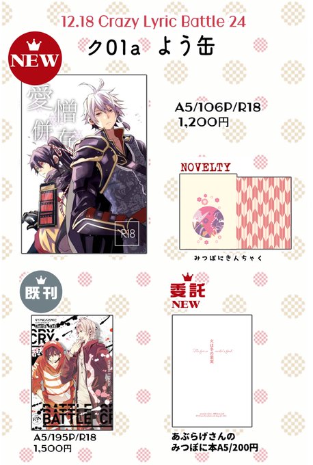 12/18CLB24『覚ます恋一途な想い5』のお品書きです。(ノベルティは数に限りがあります)当日はよろしくお願いします~!