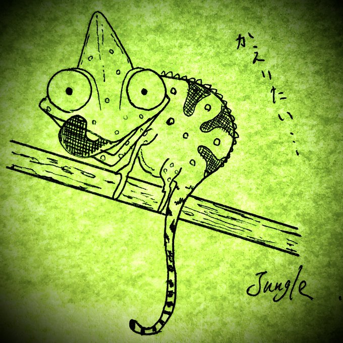 落書きは楽しいね🎶 ただだから🤭✨ #ジャングルカメネオン #マイキャラ #落書き #カメレオン #爬虫類 #ジャングルクルーズ #イラスト
