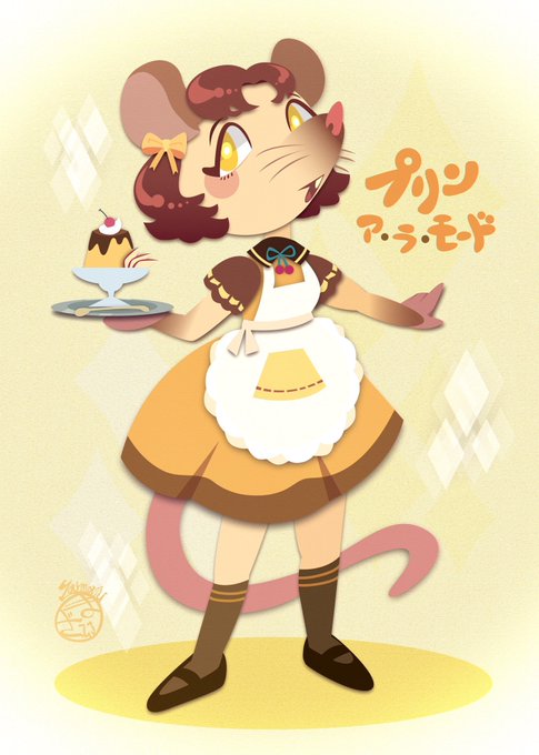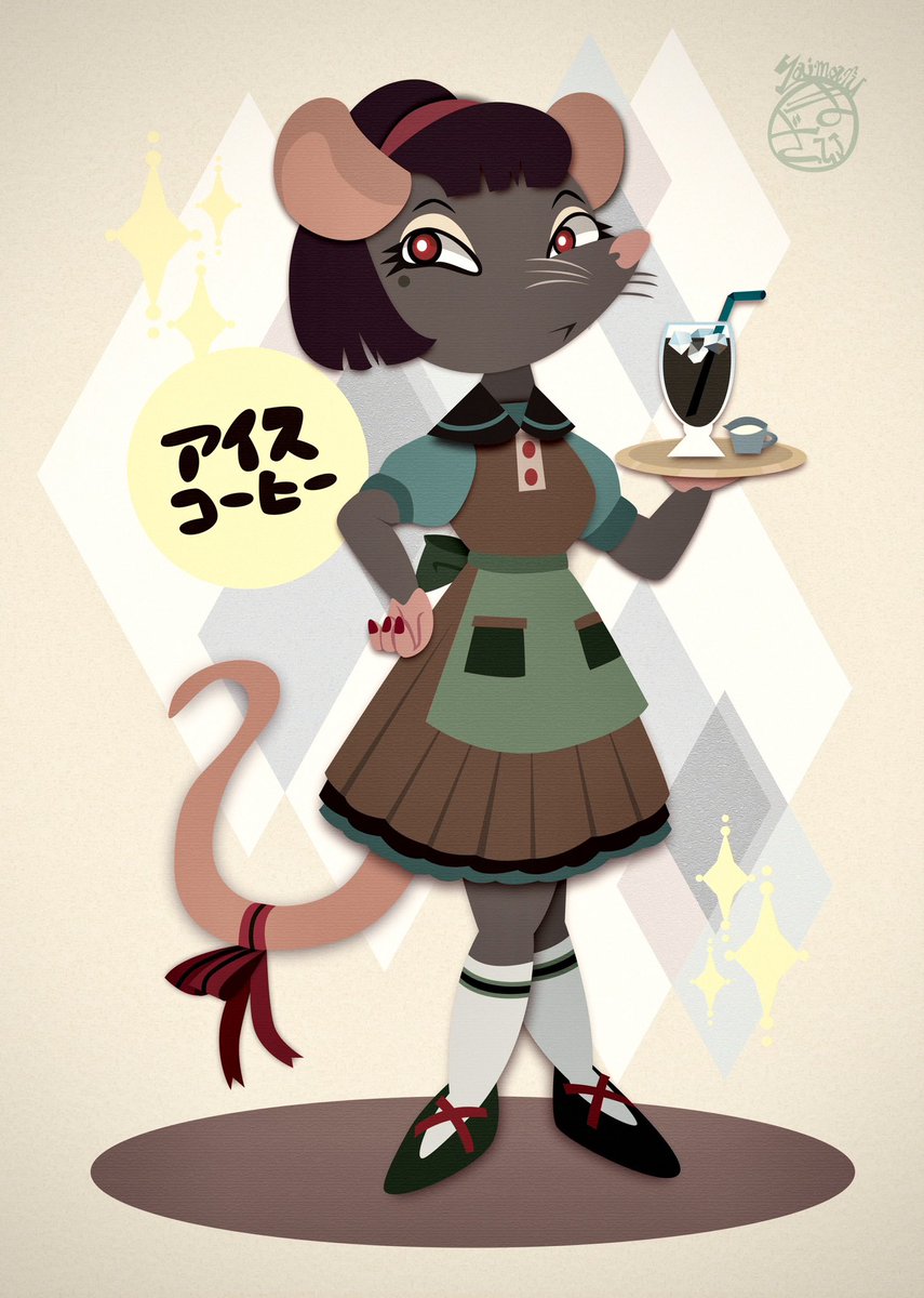 レトロな喫茶店ネズミちゃん 🥚🥛✨🧡🤎💛🖤🤍🩷🩶✨☕️🧊 mis.プリン・ア・ラ・モード🍮 and アイス・コーヒーのお嬢さん☕️ 🍴🍅✨🧡🤎💛🖤🤍🩷🩶 ✨🍒🍨 twitter.com/jhnb_zaimaru2/…