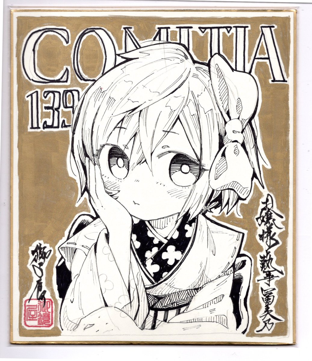 ありがたいことにTwitterで宣伝する前に売約済みになったんですが、今回のエアコミティア用に描いた色紙です。 ご購入ありがとうございました!!! #エアコミティア140 #エアコミティア_通販